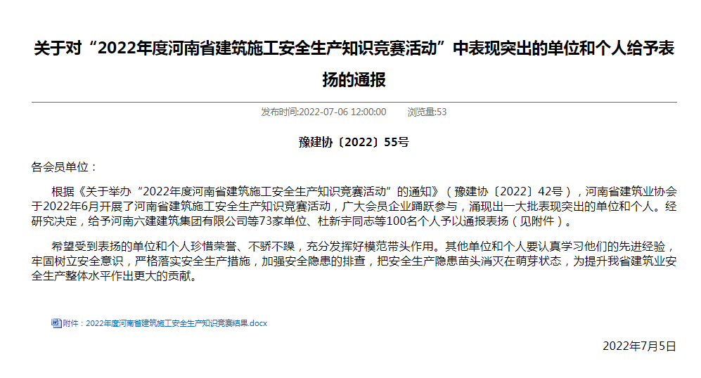 【查看詳情】安全生產(chǎn)是一個(gè)企業(yè)的生命線(xiàn),也是一個(gè)永恒的話(huà)題。多年來(lái),河南五建第二建筑安裝有限公司始終堅(jiān)持安全第一、預(yù)防為主、綜合治理的安全方