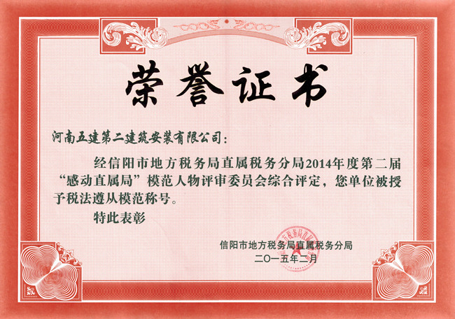 熱烈祝賀公司榮獲信陽(yáng)市地稅20年稅法遵從模范單位
