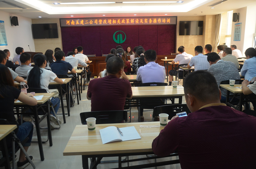 9月11日,公司舉辦了營改增相關(guān)政策解讀及實(shí)務(wù)操作專業(yè)培訓(xùn)。此次培訓(xùn),公司特邀信陽市興華稅務(wù)師事務(wù)所所長、注冊稅務(wù)師章雯老師進(jìn)行專題講解,公司項(xiàng)目經(jīng)理、項(xiàng)目財(cái)務(wù)人員及機(jī)關(guān)部室相關(guān)人員近百人參加了培訓(xùn)。