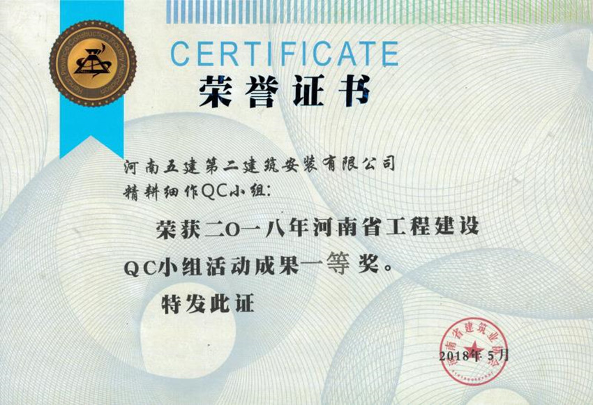 近日,河南省建筑業(yè)協(xié)會(huì)2018年工程建設(shè)優(yōu)秀QC小組活動(dòng)成果交流會(huì)在三門(mén)峽市召開(kāi),在此次的發(fā)布活動(dòng)中,公司再創(chuàng)佳績(jī),推薦5個(gè)QC成果,其中3個(gè)獲得了省級(jí)一等獎(jiǎng)、2個(gè)獲得了省級(jí)二等獎(jiǎng)。