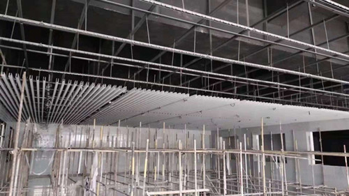 信陽高鐵站前(快樂園)交通樞紐配套設(shè)施建筑工程位于信陽高鐵站西側(cè),南北兩側(cè)為新七和新五大道,西側(cè)為規(guī)劃新三十六大街。工程地下二層,建筑面積為144740㎡,建設(shè)單位為信陽高鐵片區(qū)規(guī)劃建設(shè)領(lǐng)導(dǎo)小組辦公室,結(jié)構(gòu)形式為框架結(jié)構(gòu)。地下一層為商業(yè)和旅客換乘中心,地下二層為停車場(chǎng)。我公司承接地下一層、二層裝飾裝修、水電安裝、消防安裝、電梯安裝等工程,工程造價(jià)為1.7億元。 1.吊頂班組,北落客區(qū)東側(cè)靠展廳坡道吊頂轉(zhuǎn)換層安裝完成約1000㎡、北落客區(qū)西側(cè)靠展廳位置完成吊頂轉(zhuǎn)換層安裝約1000㎡。
