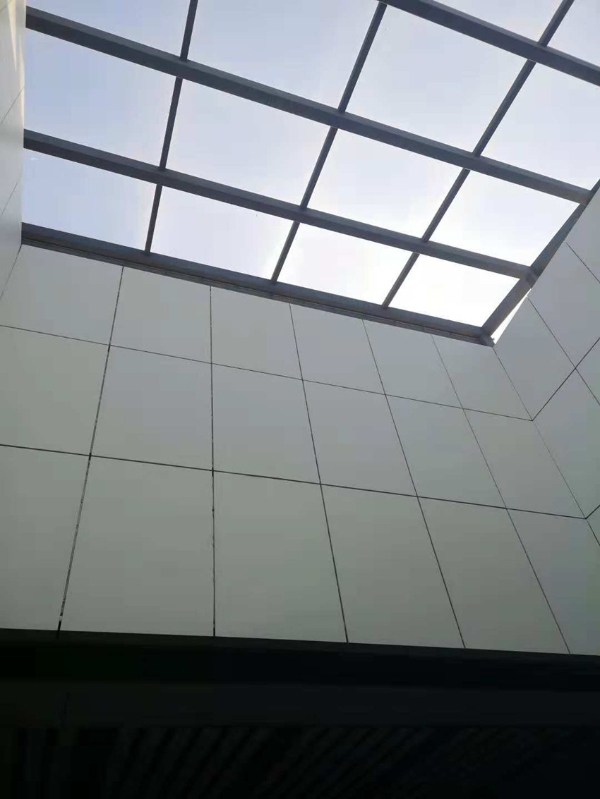 (2)吊頂班組,南北下沉廣場(chǎng)鋁方通吊頂全部安裝完成,南北落客區(qū)鋁板吊頂及包邊完成80%,鋁方通吊頂完成30%。