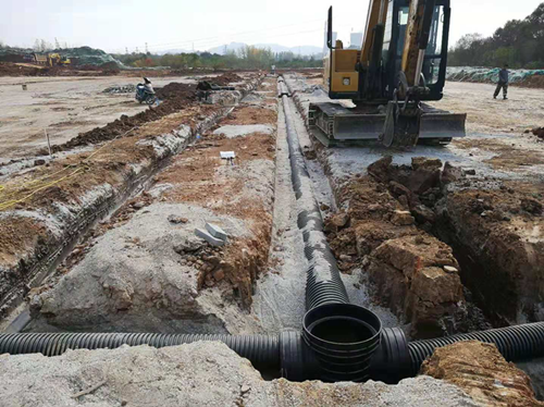 (1)停車場(chǎng)分層碾壓區(qū)(A區(qū)):預(yù)埋雨水、給水、強(qiáng)電、弱電管道?;靥钣晁?、給水管溝。砌筑雨水井、檢查井。