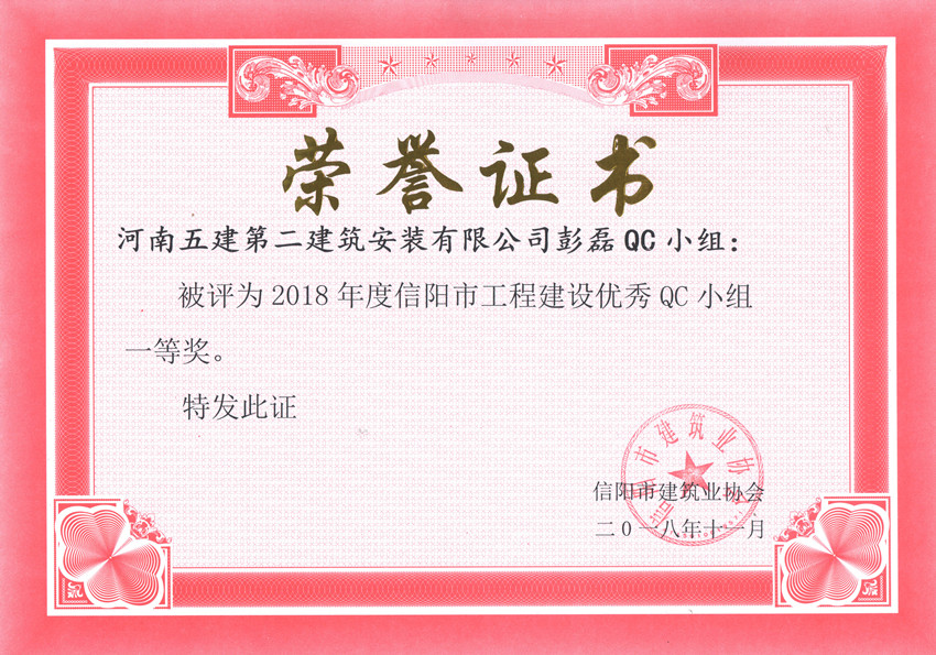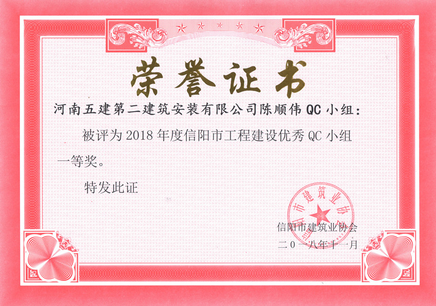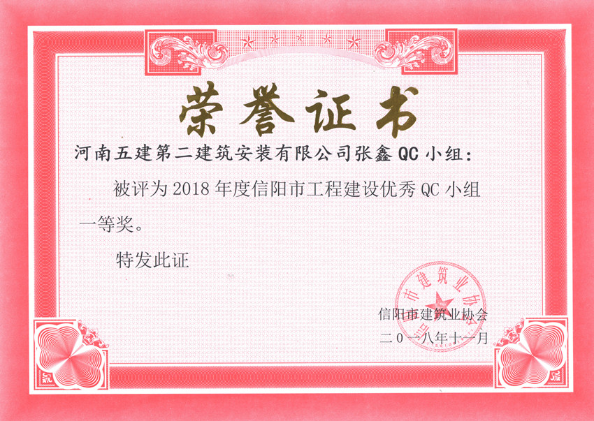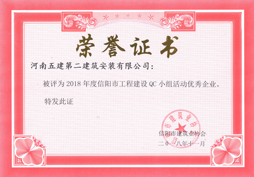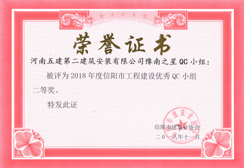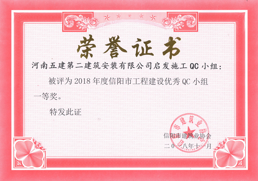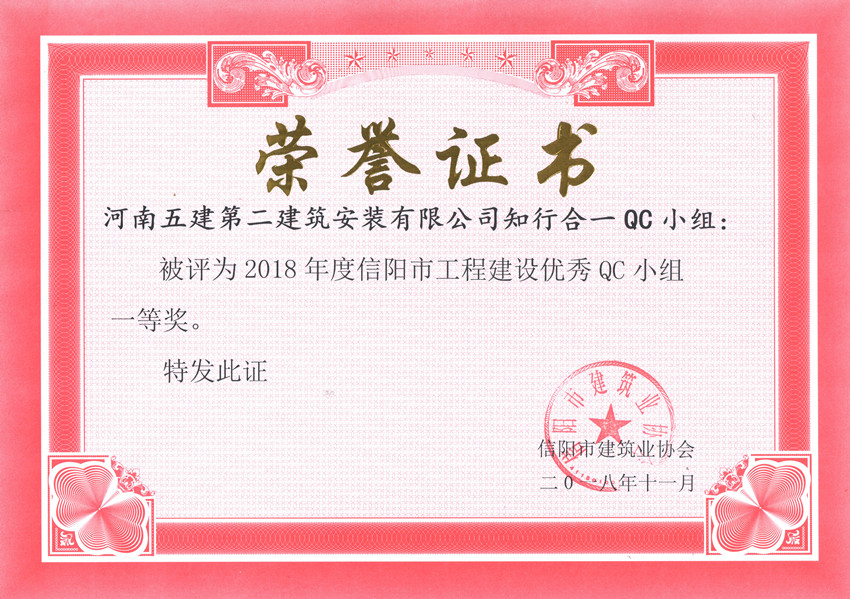 ▲公司被評(píng)為2018年度信陽(yáng)市工程建設(shè)QC小組活動(dòng)優(yōu)秀企業(yè)
