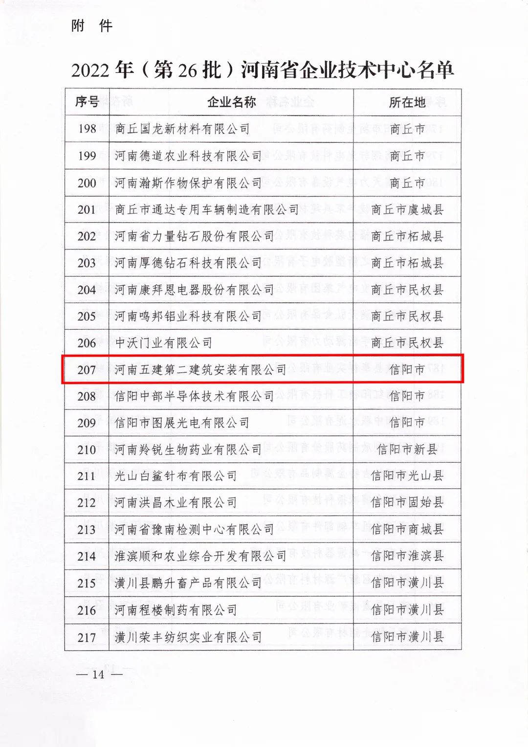 喜訊!河南五建二公司獲批河南省企業(yè)技術(shù)中心